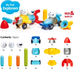 Das Set SmartMax Meine ersten Abenteurer bietet einen schnellen und freudigen Einstieg in die Welt des Konstruktionsspiels. Dank starker Magnete verbinden sich die Teile sicher und einfach, sodass Kinder viele erfolgreiche Bauversuche ohne Frust erleben.