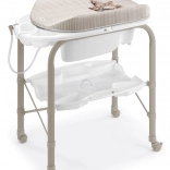 Wickeltisch Cambio ist die ideale Wahl für Eltern, die eine praktische und innovative Lösung für die Babypflege suchen – auch in kleineren Badezimmern. Dank des ultrakompakten Klappsystems lässt er sich leicht zusammenfalten und nimmt nur wenig Platz ein. Der Cambio ist für Kinder von der Geburt bis 12 Monate geeignet und mit einer weichen Wickelauflage für maximalen Komfort ausgestattet. Im Lieferumfang enthalten ist die Babywanne Baby Bagno, die mit zwei anatomischen, rutschfesten Einlagen gestaltet ist – für die Kleinsten von 0 bis 6 Monaten mit integrierter Liegefläche, während die andere Seite für Kinder von 6 bis 12 Monaten mit Sitz und Armlehnen vorgesehen ist. Für zusätzlichen Komfort verfügt der Tisch über einen praktischen Ablaufschlauch zum Entleeren des Wassers sowie Stauraum für Seife, Waschlappen und weiteres Zubehör.
