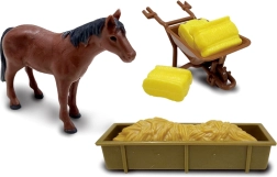 Das Set enthält Figuren von Pferden, einen Bauern und weiteres Zubehör wie Koppel, Unterstand und Werkzeuge für ein noch authentischeres Spiel.