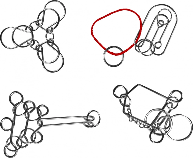 Dieses Set enthält vier einzigartige Metallpuzzles, die Ihr logisches Denken und Ihre Feinmotorik herausfordern.