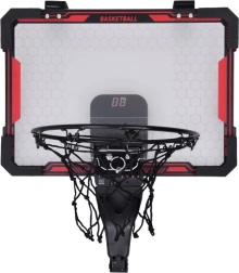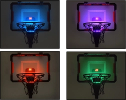 Der Spaß beginnt nach einer einfachen Installation und dem Einlegen der erforderlichen Batterien (3 x AA, nicht im Lieferumfang enthalten). Die Tafel bietet verschiedene farbige Beleuchtungen und Lautstärkeregelung. Das Spielen kann in einem von drei Modi erfolgen: Solo, für zwei Spieler oder in Zeitabschnitten. Nach dem Spiel können Sie den Ball in den speziellen Halter unter dem Korb legen.