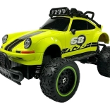 Dieses ferngesteuerte Auto durchbricht alle Hindernisse dank seiner Geländefähigkeiten. Es kann auf unterschiedlichen Oberflächen dank großer Gummireifen und starker Stoßdämpfer eingesetzt werden. Entworfen im Maßstab 1:18, entwickelt es bei Kindern Fähigkeiten wie Konzentration und manuelle Geschicklichkeit.