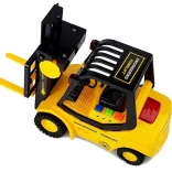 Der Stapler ist in charakteristischen Gelb-Schwarz-Farben gestaltet, die an echte Baumaschinen erinnern. Trotz seiner kompakten Größe enthält das Spielzeug detaillierte Elemente wie das Lenkrad, verschiebbare Gabeln und bunte Tasten, die verschiedene Geräusche von sich geben. Kinder können sich auf Geräusche wie Motorstart, Hupe und Rückwärtsgang freuen.