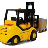 Der Gabelstapler im Maßstab 1:16 verfügt über realistische Details wie ein Lenkrad und bunte Knöpfe. Ideal zur Simulation von Bauarbeiten.