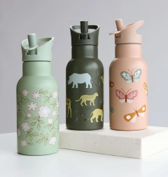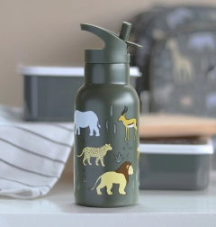 Die robuste und leichte Edelstahlflasche mit spielerischem Savannenmotiv unterstützt das Trinkverhalten von Kindern den ganzen Tag. Dank der doppelwandigen Konstruktion bleibt das Getränk länger auf der gewünschten Temperatur, und die bequeme Tülle mit Trinkhalm erleichtert das Trinken unterwegs und in der Schule.