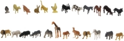 Eine umfangreiche Sammlung von Haus-, Wald- und Wildtieren fördert kreatives Spielen und das Lernen von Namen und Lebensräumen, in denen die Tiere leben.