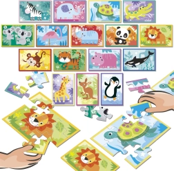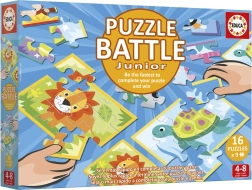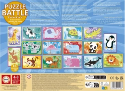 Verwandeln Sie Puzzeln in ein Action-Spiel! Das Set Educa Puzzle-Schlacht Tierchen bringt schnelle Mini-Duelle, bei denen die Spieler ihre Tiermotive so schnell wie möglich nach den Vorlagenkarten zusammensetzen. Jedes Puzzle hat nur 9 Teile – perfekt für kurze, aber intensive Spielrunden.