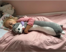 Suchen Sie ein vielseitiges Spielzeug, das Freude bereitet und zugleich für ruhigen Schlaf sorgt? Dieser lange Plüsch-Husky bietet Kindern und Eltern genau das, was sie brauchen: außergewöhnliche Weichheit, eine wohlig warme Umarmung und sichere Materialien, die auch für die Kleinsten geeignet sind. Perfekt als Schmusefreund im Bettchen, als bequemes Rückenkissen oder als stilvolle Dekoration fürs Kinderzimmer.