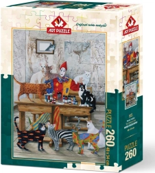 Entdecken Sie die Freude am Puzzeln mit dem ART PUZZLE mit dem Motiv bunter Katzen. Das Set mit 260 Teilen bietet eine angenehme Herausforderung und Entspannung und ergibt nach dem Zusammensetzen ein Bild im Format 34 × 48 cm.
