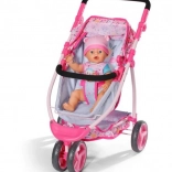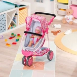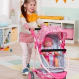 Dieser kombinierte Kinderwagen ist der ideale Begleiter für kleine Pflegemütter und ihre Puppen. Dank der Möglichkeit, in die sportliche Version umzuwandeln, kann die Puppe die Fahrt in verschiedenen Positionen genießen. Der Wagen verfügt über ein Verdeck, das sich für Sonnenmöglichkeiten leicht herunterklappen lässt, und über einen geräumigen Stauraum für alles Nötige auf dem Spaziergang – von Plüschtieren bis zu draußen gesammelten Schätzen.