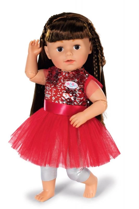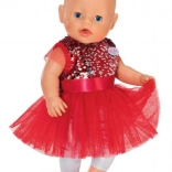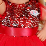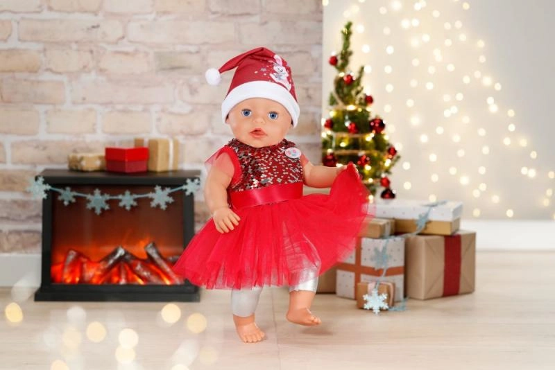 Zu Weihnachten kleidet sich BABY born gerne festlich. Und was könnte schöner sein als ein rotes Kleid mit Pailletten und einem Tüllröckchen, dazu silberne Leggings und eine Weihnachtsmütze, die die Ohren warm hält?