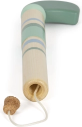 Diese hochwertig verarbeitete Korkenpistole aus Holz verbindet natürliche Optik mit sanften Farben und lädt zum aktiven Spiel drinnen wie draußen ein. Dank des befestigten Korkgeschosses an der Schnur geht nichts verloren, und Kinder können Genauigkeit und Reaktionsvermögen immer wieder trainieren.