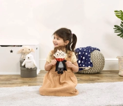 Dieses offiziell inspirierte Plüschtier trägt einen ikonischen schwarzen Umhang und einen rot-gelben (Gryffindor) Schal, die zusammen mit der runden Brille und der Blitznarbe den beliebten Zauberer originalgetreu darstellen. Ideal zur Förderung der Sinne und für beruhigende Rituale vor dem Schlafen.