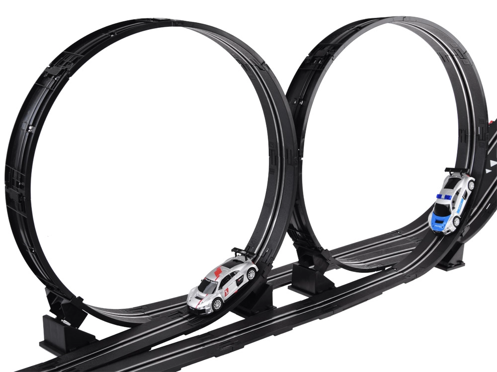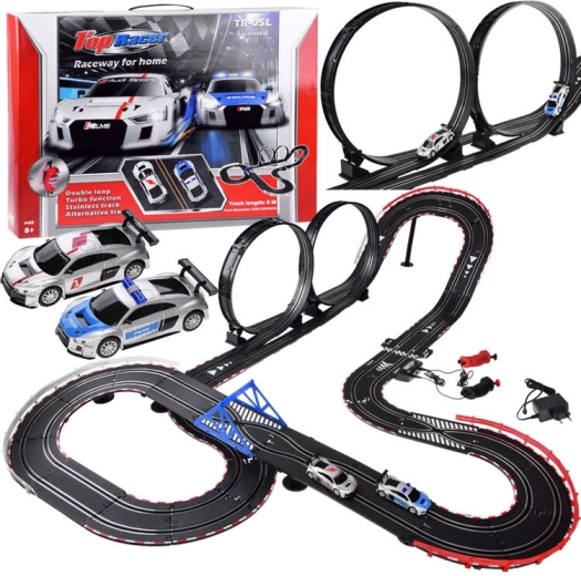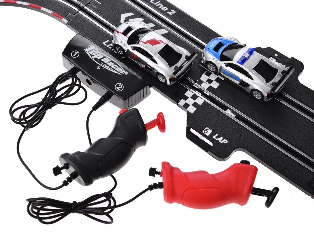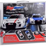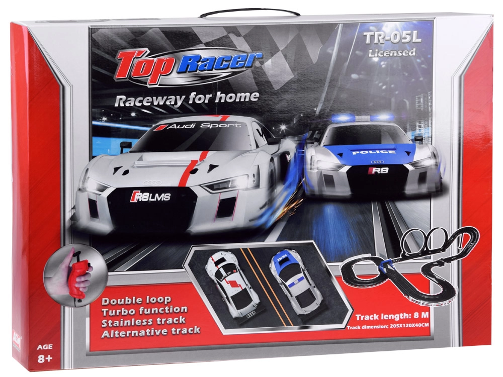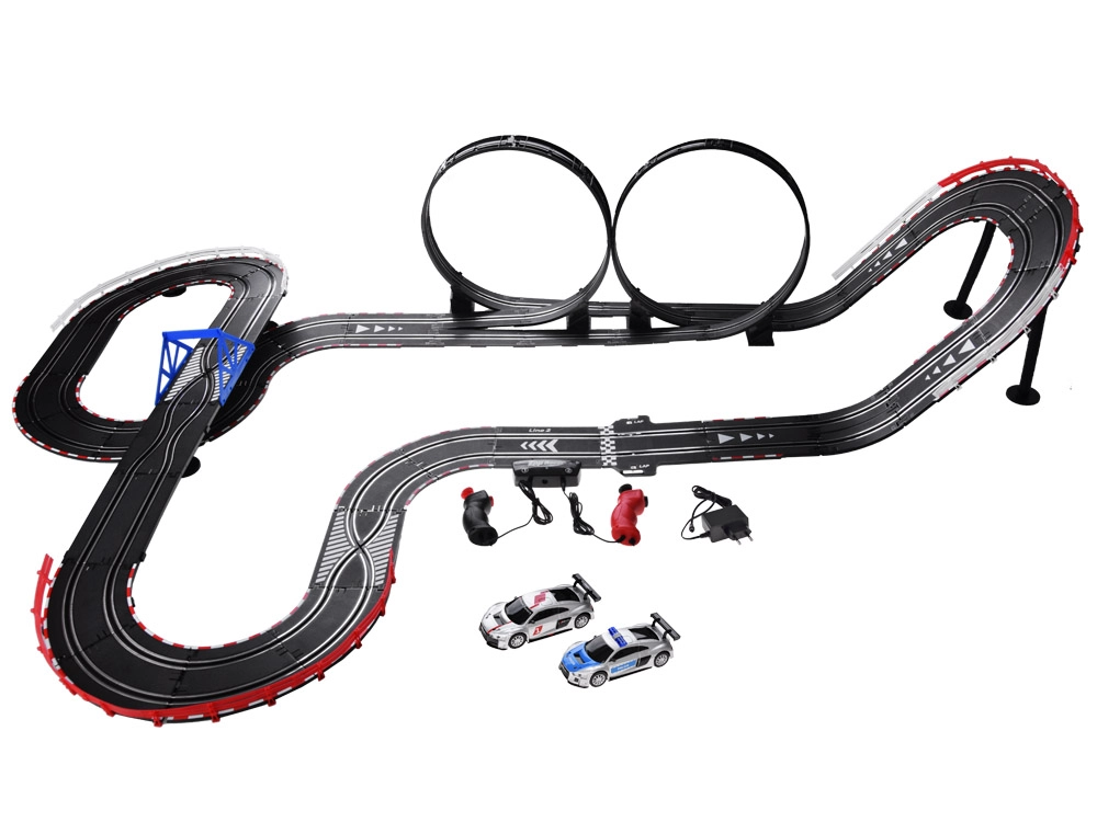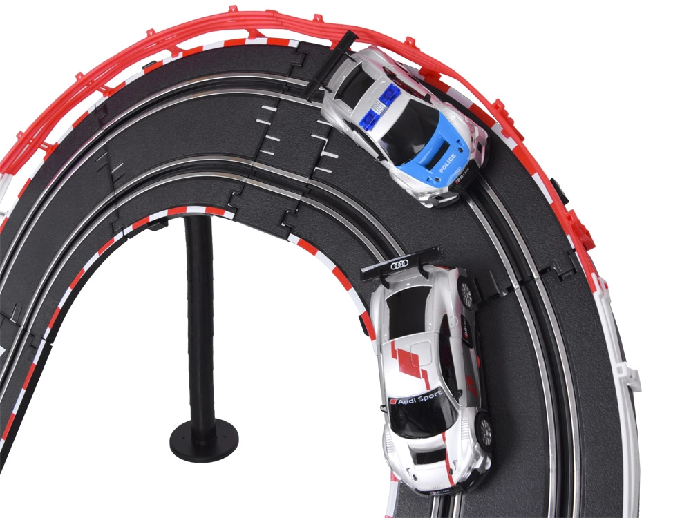 Extra lange Slotcar-Rennbahn ist der Traum jedes kleinen Rallye- und Auto-Fans. Die Strecke mit einer Länge von 8 m mit zwei Fahrzeugen, extremen Geraden und Kurven sorgt beim Spielen für jede Menge Spannung. Die zwei superschnellen, offiziell lizenzierten Audi-Fahrzeuge wurden mit großer Sorgfalt und Liebe zum Detail hergestellt. Das gesamte Set präsentiert sich sehr eindrucksvoll.