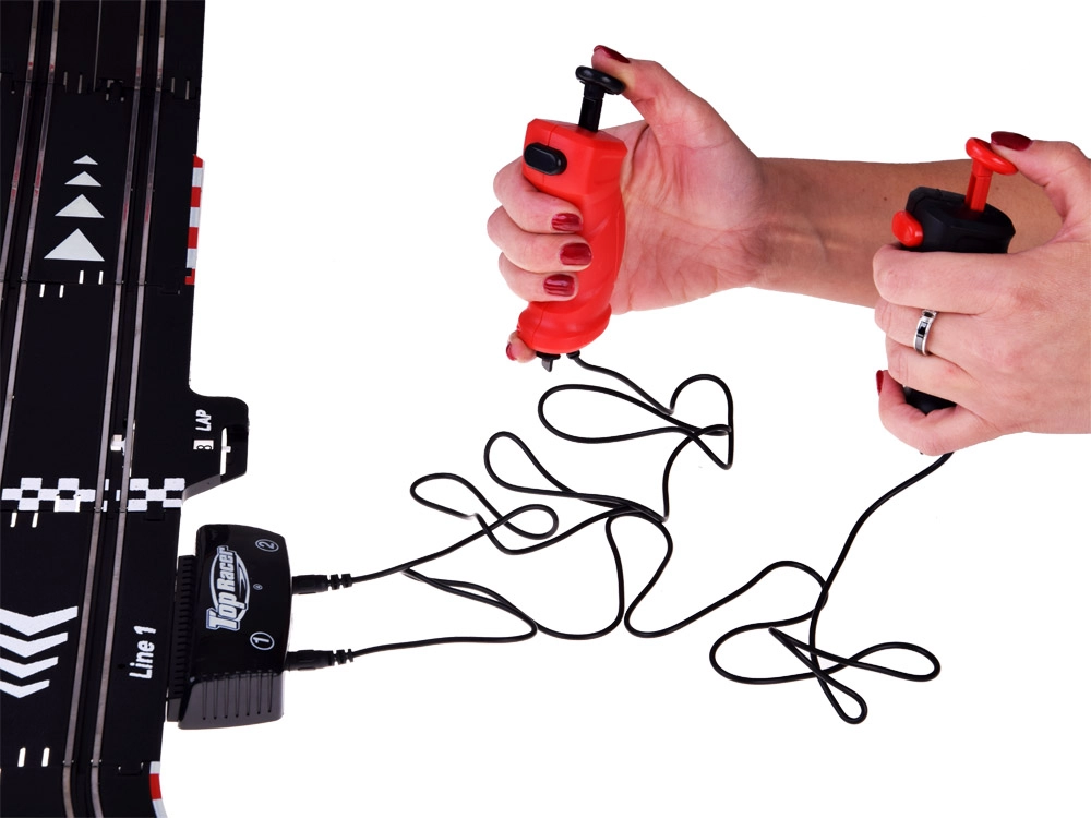 Die Bahn wird mit Hilfe einer Fernbedienung mit Gasfunktionen gesteuert, die an die auf der Strecke platzierte Station angeschlossen werden müssen. Dieses Spielzeug benötigt keine Batterien, die Fahrzeuge werden über ein Netzteil mit Energie versorgt.