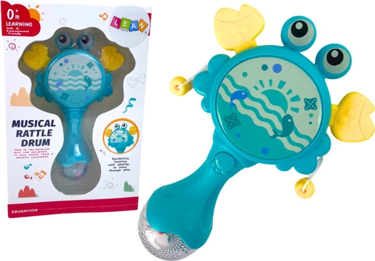 Die Krabbenrassel mit Trommel ist so gestaltet, dass sie die kindliche Entwicklung von klein auf fördert. Durch das Spielen mit der Rassel lernen Kinder neue Farben, Töne und Formen kennen, was ihre Vorstellungskraft anregt und ihren Sinn für Hören und Sehen verbessert. Die Rassel besteht aus hochwertigem, zertifiziertem Kunststoff, der die Sicherheit der Kinder gewährleistet. Die gelben Scheren sind aus weichem Material, um das Kind beim Spielen zu schützen.