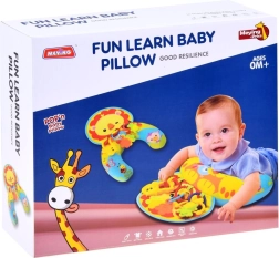 Im Set enthalten sind eine knisternde Mini-Unterlage und farbige Rasseln, die frei bespielt oder an der weichen Rolle befestigt werden können. Leuchtende Farben und verschiedene Texturen ziehen die Aufmerksamkeit auf sich und fördern das Erkennen von Formen und Farben. Das Kissen ist leicht zusammenzulegen, einfach zu transportieren und zu reinigen – ideal für zu Hause, das Kinderzimmer und Spaziergänge im Park.