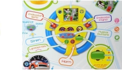 Die Hupe und sechs verschiedene Effekte werden per Knopfdruck aktiviert. Blinkende Lichter und farbige Bedienelemente halten die Aufmerksamkeit der Kinder und fördern ihre sensorische Entwicklung.