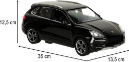 Entdecken Sie das Fahrgefühl mit dem Modell Porsche Cayenne Turbo von Rastar! Dieses elegante schwarze SUV im Maßstab 1:14 ist eine genaue Replik des berühmten Autos – mit präzise verarbeitetem Porsche-Logo, realistischen Scheinwerfern und charakteristischer Silhouette. Das Modell ist mit Gummireifen ausgestattet, die hervorragenden Grip bieten und zugleich den Boden schützen, was es ideal für das Spielen drinnen und draußen macht.