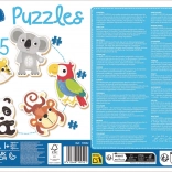 Die Educa Baby-Puzzle Wildtiere 5-in-1 sind speziell für kleine Kinder entwickelt, die gerade erst mit Puzzles beginnen. Durch die schrittweise steigende Teilezahl (3 bis 5) gewinnen Kinder spielerisch an Sicherheit und Geduld. Große und dicke Teile lassen sich leicht greifen und passen genau zusammen.