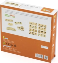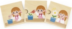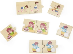 Dieses Holzpuzzle der Firma VIGA bietet dem Kind die Möglichkeit, 8 bunte Puzzlesets zu erstellen, die verschiedene Aktivitäten der Kinder in ihrem Alltag darstellen. Dazu gehören beliebte Aktivitäten wie Händewaschen, Laufen oder das Ausblasen der Kerzen auf einem Kuchen.