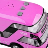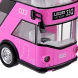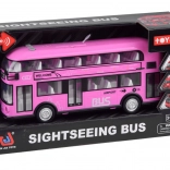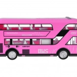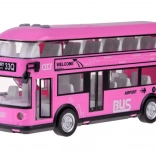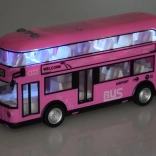 Fröhlicher rosa Doppeldeckerbus, der sicher viele kleine Fahrer und Fans solcher Fahrzeuge begeistern wird. Dieser realistische Doppeldeckerbus wurde mit großer Präzision in einer angenehmen rosa Farbe komplett aus Kunststoff gefertigt. Der Bus sorgt dank Sound- und Lichteffekten für viel Spaß. Er hat zu öffnende Türen und hinter den Fenstern befinden sich Sitze und ein Lenkrad, was das Spiel noch realistischer macht. Ein Vorteil des Busses ist die Pull-Back-Funktion. Ziehen Sie das Spielzeug einfach auf einer Oberfläche nach hinten oder nach vorne, und der Bus fährt von selbst.