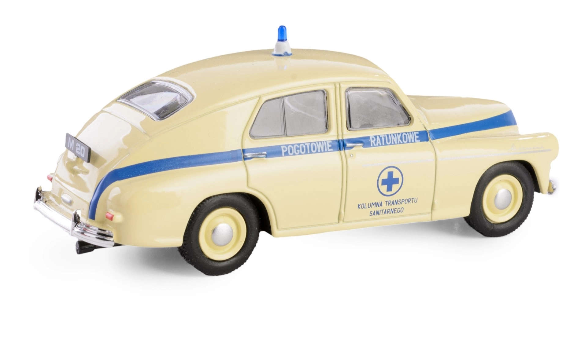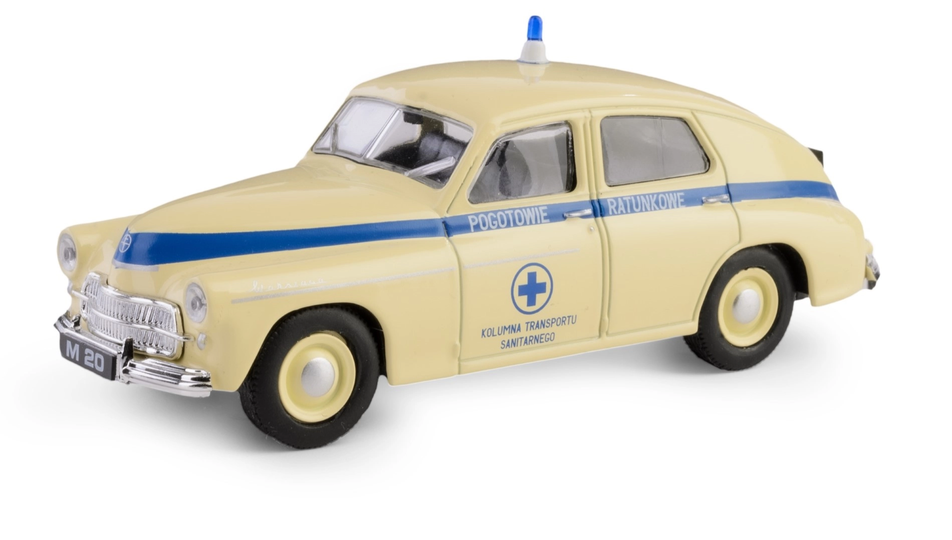 Entdecken Sie das ikonische historische Automobil aus der PRL-Zeit – die Krankenwagen-Version des Warszawa im Maßstab 1:43. Dieses detailreich ausgearbeitete Modell kombiniert eine robuste Metallkarosserie mit präzisen Kunststoffelementen und zeigt den Charakter des legendären Fahrzeugs originalgetreu.