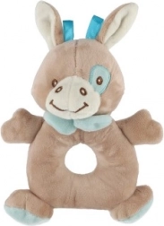 Dank der kompakten Größe von 18 cm passt das Spielzeug problemlos in den Kinderwagen, die Tasche oder in Kinderhände. Die weiche Oberfläche ist angenehm anzufassen und sicher für sanftes Kauen, sodass der Esel zum beliebten Begleiter beim Spielen und Einschlafen wird.