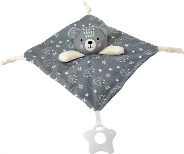 Das Schnuffeltuch Teddybär Miluš ist ein weiches Plüsch-Schnuffeltuch, das Kindern hilft, sich geborgen zu fühlen und ruhiger einzuschlafen. Der sanfte, angenehme Stoff in elegantem Grau ist hautfreundlich, und die Größe 25 × 25 cm passt perfekt in Kinderwagen, Bettchen und kleine Kinderhände.