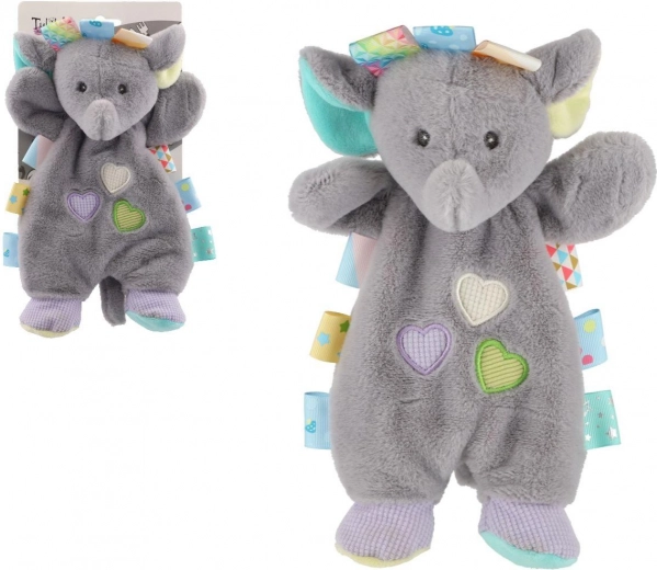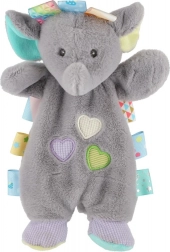 Dieses weiche Kuscheltuch in Elefantenform verbindet Komfort mit anregendem Spiel. Der kuschelweiche Plüsch, pastellige Details und die mehrfarbigen Etiketten an den Rändern laden zum Greifen und Ertasten ein und fördern so die Feinmotorik und die sensorische Entwicklung schon ab der Geburt.