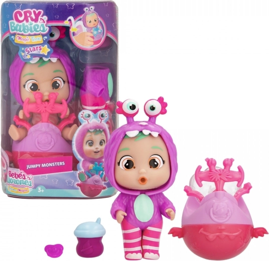 Die Kollektion Stars Jumpy Monsters bietet sechs verschiedene Figuren zum Sammeln: Momo, Jojo, Bubu, Fuzz, Zippy und Nunu. Jede Figur kommt mit sieben Überraschungen, darunter Schnuller, Fläschchen und Silikonkleidung. Spezielle Accessoires wie Schleifen oder Schnuller können ebenfalls in einigen Sets enthalten sein.