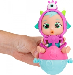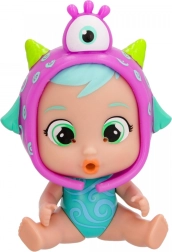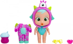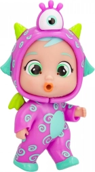 Fuzz aus der Serie CRY BABIES MAGIC TEARS Stars Jumpy Monsters bringt Kindern spielerische, fantasievolle Geschichten. Die Puppe hat ein abnehmbares Silikon-Kostüm mit einem niedlichen Monster-Motiv und kann farbige Tränen – Schleim weinen. Füllen Sie sie einfach mit der beiliegenden Flasche mit Wasser und drücken Sie sanft auf den Bauch.