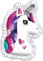 Alles Nötige ist enthalten: vorgeschnittene und hinterklebte Teile aus Fleece und Filz, Pailletten-Elemente sowie eine klare, illustrierte Anleitung. Kinder fertigen ein weichkuscheliges Einhorn, das das Kinderzimmer schmückt oder als originelles Geschenk dient.