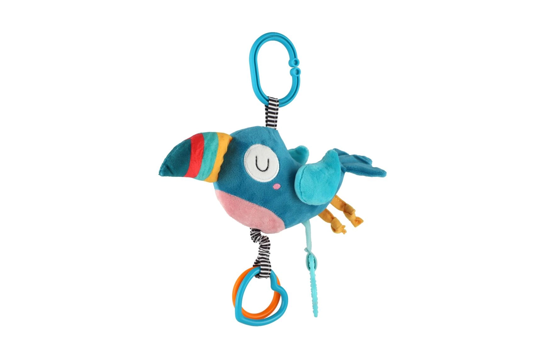 Dieser kuschelweiche Vogel in sanften Farben wird der erste Freund Ihres Babys. Er kombiniert weichen Plüsch zum Schmusen, strukturierte Beißringe zur Zahnfleischmassage und einen Clip für einfaches Befestigen am Kinderwagen, am Bettchen oder am Autositz. Fröhliche Farben und verschiedene Materialien stimulieren Sehen und Tasten und wecken die Neugier.