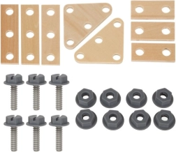 Durchdachte Details wie Maßskala, vorgebohrte Löcher, funktionierender Schraubstock und Ablagefächer fördern logisches Denken, Geduld und manuelle Fertigkeiten. Das Produkt erfüllt die europäischen Sicherheitsnormen und besteht aus umweltfreundlichen Materialien.