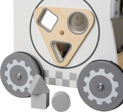 Der Holz-Wagen – Werkstatt 3-in-1 KRUZZEL verbindet Spaß und Lernen. Kinder können mit realistischen Holzwerkzeugen werkeln, Formen sortieren und die Prinzipien von Zahnrädern entdecken. Die Konstruktion aus MDF und Holz mit gummierten Rädern sorgt für Stabilität, lange Lebensdauer und leisen Betrieb.