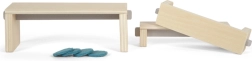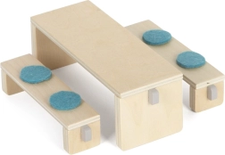 Esszimmertisch mit Bänken und Hockern schafft eine gemütliche Atmosphäre für Puppen.