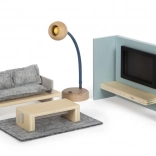 Dieses wunderschön gearbeitete Möbelset bringt realistische Elemente in die Kinderspielwelt, die helfen, die Fantasiewelt kleiner Architekten und Designer zu entwickeln. Kinder können in das Spiel einbezogen werden, indem sie „Fernsehprogramme“ mit Einsteckkarten ändern, während die Stehlampe die echte Wohnzimmeratmosphäre verstärkt.