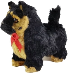 Schwarz‑braunes Fell, dunkle Augen und eine rote Schleife verleihen dem Spielzeug ein naturgetreues Aussehen und sorgen für maximale Anschmiegsamkeit.