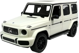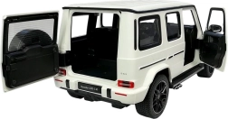 Der ferngesteuerte Mercedes G63 in Weiß ist eine authentische Nachbildung im Maßstab 1:14. Das Auto fährt vorwärts, rückwärts, lenkt und bremst per Fernbedienung. Dank seines geländetauglichen Charakters kann es sowohl im Innen- als auch im Außenbereich verwendet werden. Die Lichter des Fahrzeugs werden während der Fahrt aktiviert. Die Türen lassen sich manuell öffnen, der Innenraum und das Fahrwerk sind mit großer Sorgfalt gestaltet, um dem Originalfahrzeug zu entsprechen. Der ferngesteuerte Mercedes wird per Funkfernbedienung gesteuert und erreicht eine Geschwindigkeit von 7 Kilometern pro Stunde. Die Reichweite der Fernbedienung beträgt mehrere Dutzend Meter, und im Gegensatz zu Infrarot-Fernbedienungen kann sie problemlos auch bei direkter Sonneneinstrahlung im Freien verwendet werden.