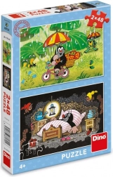 Entdecken Sie die zauberhafte Welt der beliebten Figur Krteček (Der kleine Maulwurf) mit dem Doppelpack Kinderpuzzles von DINO. Jedes Puzzle hat 48 Teile und zeigt schöne Szenen – eine fröhliche Fahrradtour im Regen und einen ruhigen Moment im gemütlichen Zimmer. Beim Puzzeln stärken Kinder ihre Geduld, lernen, sich zu konzentrieren, und entwickeln ihre Vorstellungskraft.