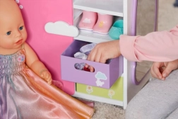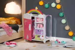 Entdecke den Regenbogen-Kleiderschrank BABY born, der clevere Organisation und verspieltes Design vereint. Kinder werden den leuchtenden Regenbogen mit Ente Berta und die fröhliche Melodie bei der Outfitwahl lieben. Der Schrank bietet viel Platz für alle Accessoires und Puppenkleidung – von Kleidchen bis zu Schühchen.