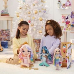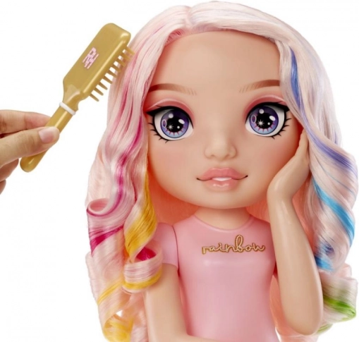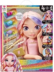 Ein brandneuer Frisierkopf im Stil der beliebtesten Rainbow High Puppe Bella. Du kannst Strähnchen kreieren, die Haare färben oder die Nägel lackieren.