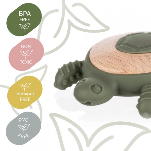Ihr Baby wird unseren niedlichen Schildkröten-Beißring, der natürliches Holz mit sicherem Silikon verbindet, sofort lieben. Der ideale Begleiter für die Zahnungsphase: Er lindert Schmerzen und fördert zugleich die sensorische Entwicklung Ihres Babys.