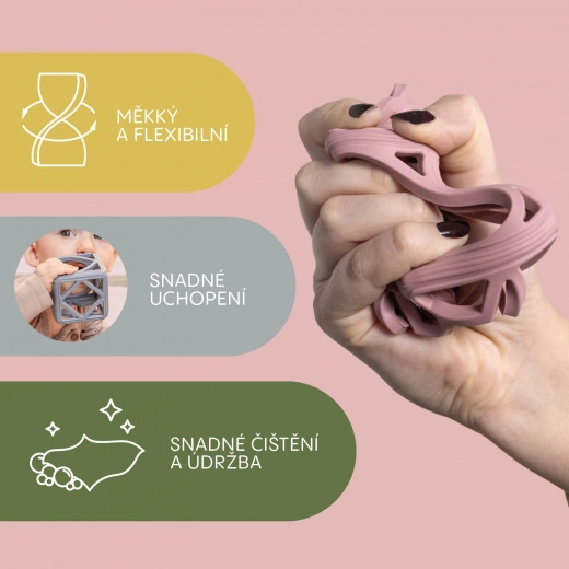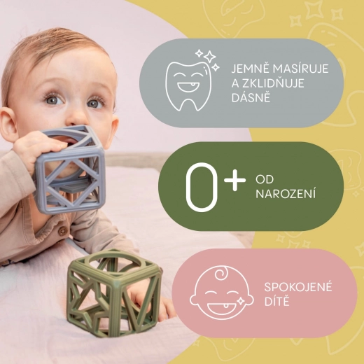 Helfen Sie Ihrem Baby durch die anspruchsvolle Zahnungsphase mit dem Silikon-Beißring Square. Seine einzigartige geometrische Form liegt perfekt in kleinen Händchen und bietet eine wirksame Zahnfleischmassage, die unangenehme Empfindungen beim Zahnen lindert.