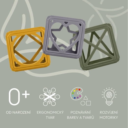 Helfen Sie Ihrem Baby, die anstrengende Zahnungsphase mit dem Silikon-Beißring Square zu meistern. Seine einzigartige geometrische Form liegt perfekt in kleinen Händchen und bietet eine wirksame Zahnfleischmassage, die unangenehme Empfindungen beim Zahnen lindert.
