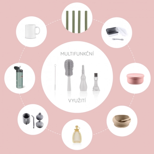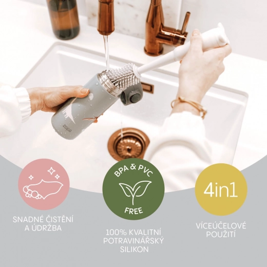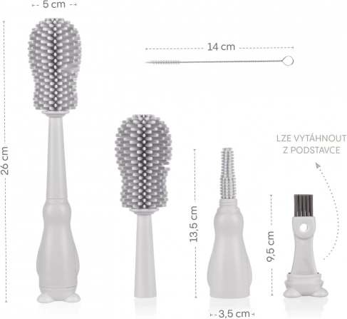 Silikonbürste für Babyflaschen 3-in-1, Hellgrau