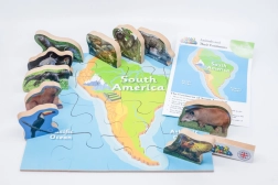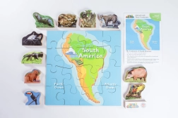 Holzpuzzle Südamerika und seine Tiere bietet lehrreiche Unterhaltung für Kinder, die das Kennenlernen der Kontinente und ihrer Fauna mit spielerischem Lernen verbindet.