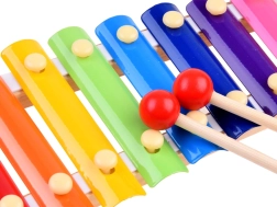 Im Set befinden sich zwei Holzschlägel mit angenehmer Länge für Kinderhände sowie Beispielnoten auf der Verpackung, mit deren Hilfe Kinder leicht ihre ersten Melodien lernen. Das Spielen auf dem Xylophon unterstützt Konzentration, Koordination und Kreativität.