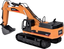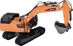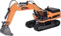 Die Fernsteuerung auf 2,4 GHz arbeitet stabil und störungsfrei, sodass Sie Vorwärts-/Rückwärtsfahrt, Drehen auf der Stelle, das Anheben des Auslegers sowie die Schaufel separat steuern können. Stummschalttaste, DEMO-Funktion und Hupe sind ebenfalls vorhanden.